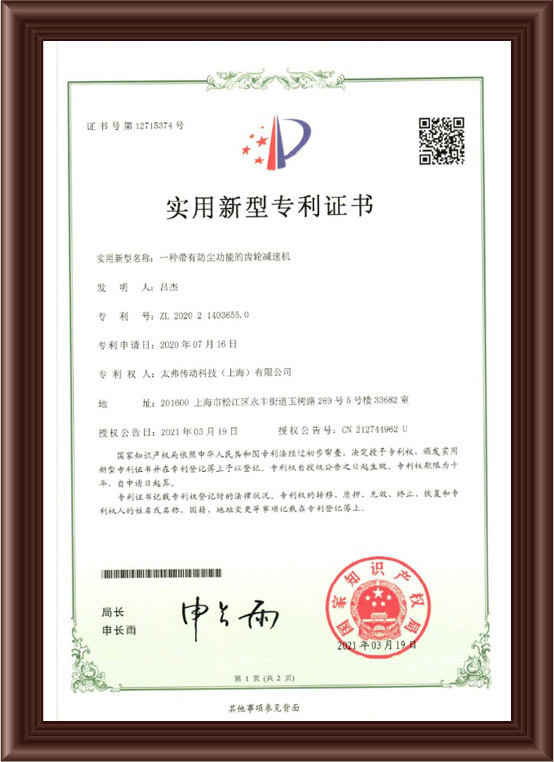 太弗傳動科技(上海)有限公司,是臺灣太弗科技工業于上海成立的服務據點,2013年元月正式營運。提供廣大中國客戶更便捷的產品購買及技術支持。 太弗科技專業從事各種精密減速機的研發、生產、設計、銷售,為國際貿易綜合發展的高科技企業??偛吭O在臺灣臺中, 組織下太弗傳動科技(上海)有限公司。